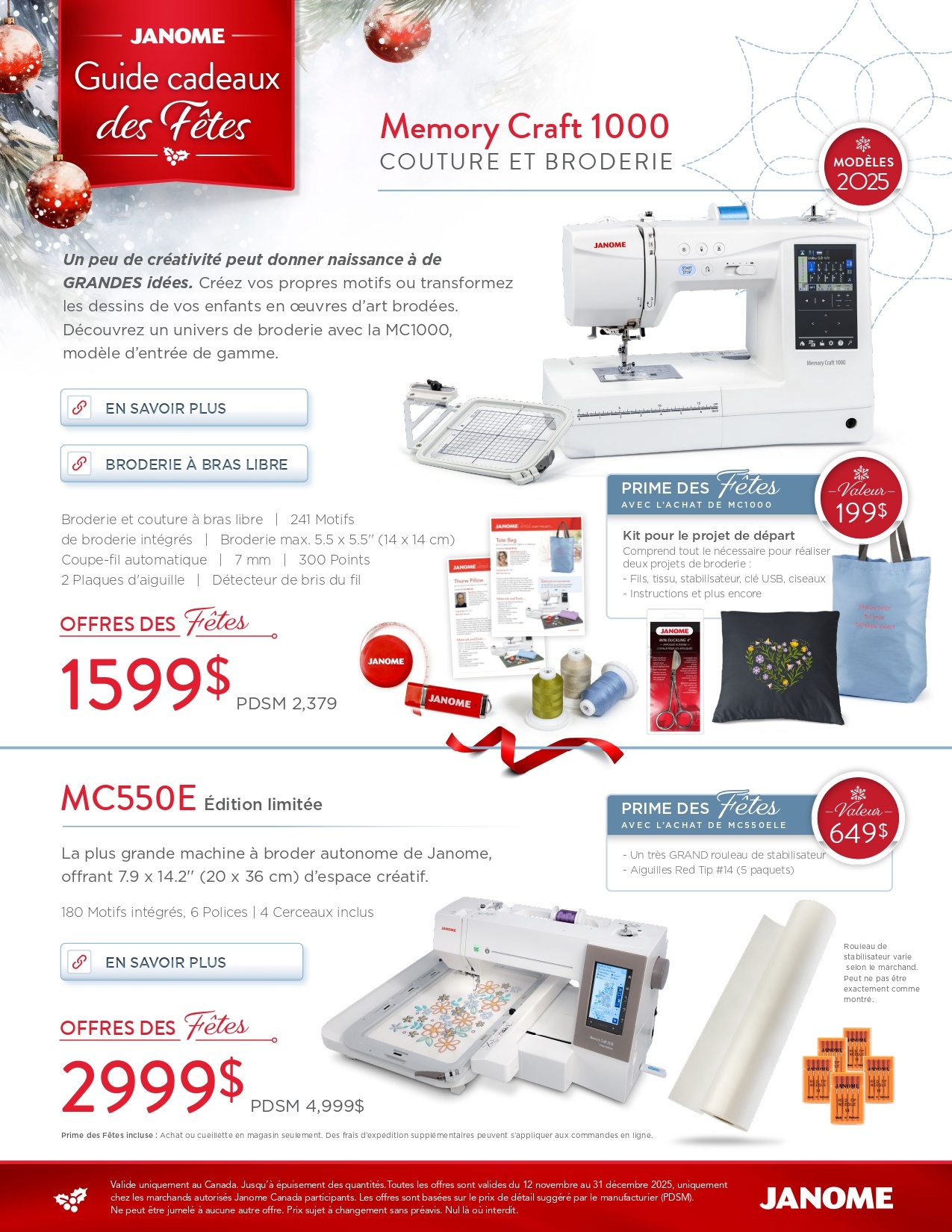 Janome couture et broderie Mémory Craft MC1000